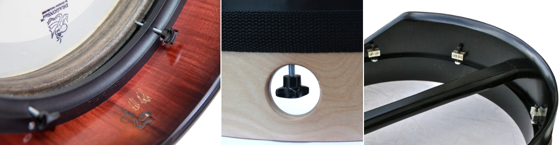 Il existe différents systèmes, par exemple le système de clé classique comme celui que l’on peut voir sur la gamme accordable des bodhráin Waltons. Aujourd'hui, il est recommandé d'acheter un tambour avec un système de réglage sans outil. Ne pas avoir à chercher des outils est un grand avantage et un confort. Il est important que le système fonctionne correctement, car vous n'utilisez que vos doigts pour syntoniser. Tous les tambours Hedwitschak Drums sont livrés avec un système sans outil.